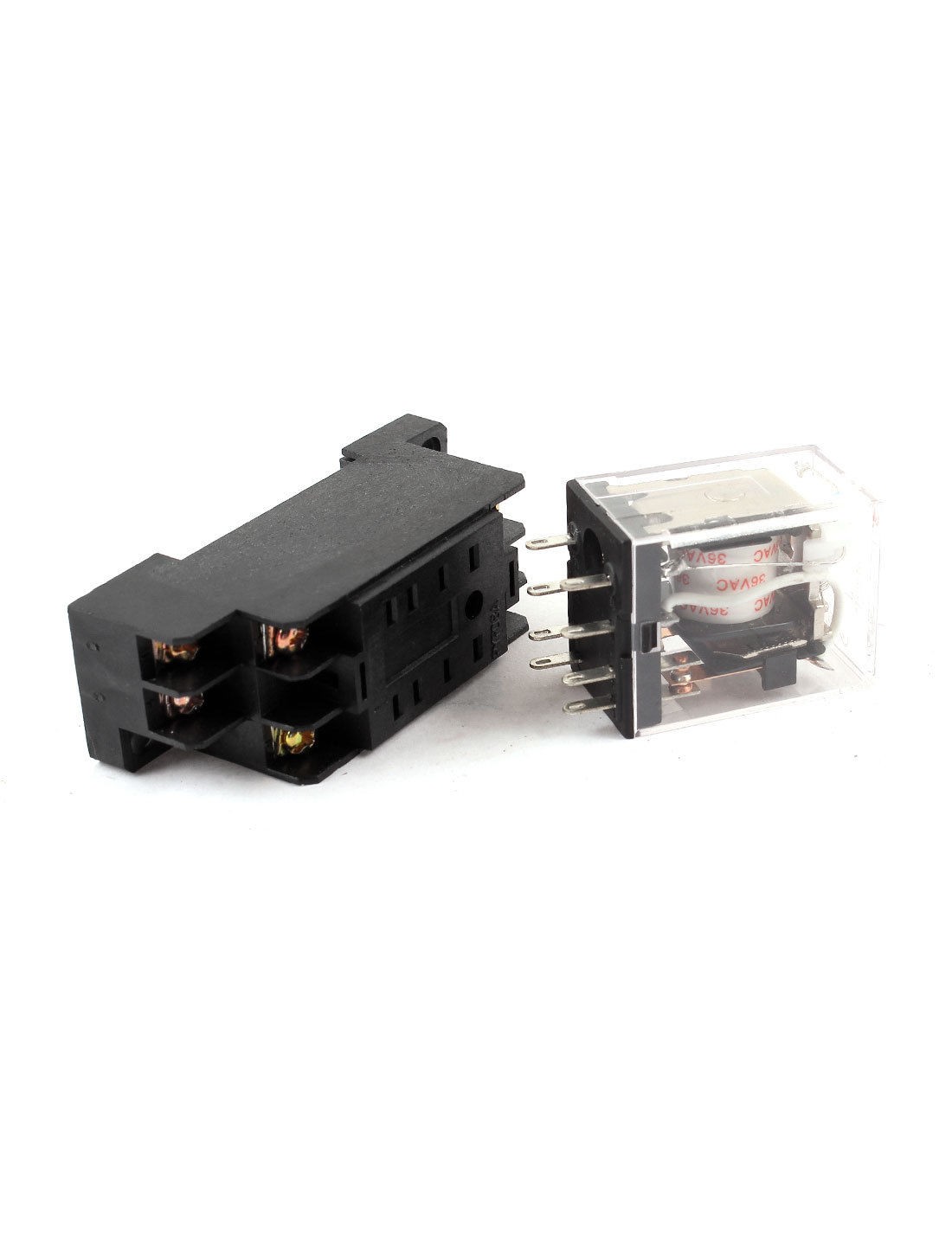 HH52PL AC36V Coil DPDT 8Pin 35mm DIN Rail Electromagnetic Power Relay