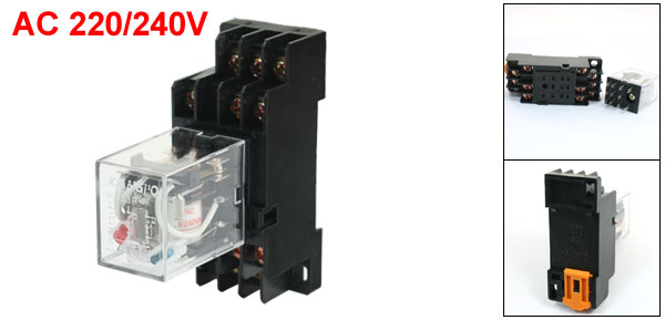 Product Name Electromagnetic Relay w Socket Relay Model No. HH53P Socket Model No. PYF11A Coil Voltage AC 220/240V Contact Capacity 5A 250VAC /5A 30VDC Type 3PDT, 3NO 3NC Indicator Light Color Red Pin Quantities 11 Mount Rail Type 35mm DIN Rail Fixing Mount Hole Size 5.5 x 4.5mm/0.22" x 0.18"(L*W) Overall Size (Approx.) 75 x 30 x 65mm/3" x 1.2" x 2.6"(L*W*H) Shell Material Plastic Main Color Clear, Black Net Weight 70g Package Content 1 x Electromagnetic Relay w Socket - Reviews