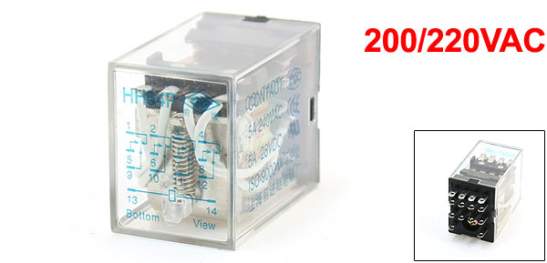 HH54P 200/220VAC Coil White LED General Purpose Power Relay 4PDT 14Pin