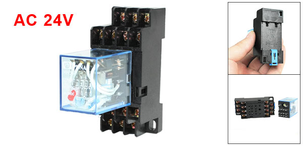Product Name Electromagnetic Relay Model No. HH54P Socket Model No. DYF14A Coil Voltage AC 24V Contact Capacity 5A 250VAC /28VDC Type 4PDT Number of Terminals 14 Mount Rail Type 35mm DIN Rail Fixing Mount Hole Size 6 x 4mm/0.24" x 0.16"(L*W) Total Size (Approx.) 68 x 29 x 65mm/2.7" x 1.1" x 2.6"(L*W*H) Shell Material Plastic Main Color Black, Clear Blue Net Weight 74g Package Content 1 x Electromagnetic Relay - Reviews