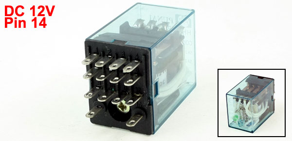 HH54P DC 12V Coil 4PDT 14-Pin 14P Electromagnetic Power Relay