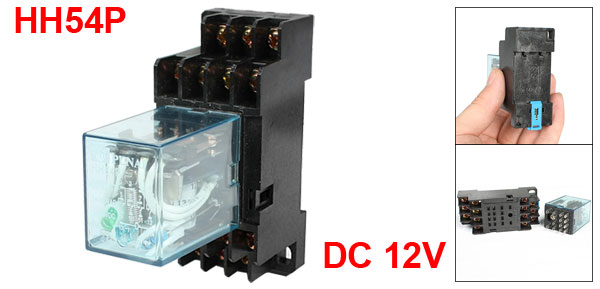 Product Name Electromagnetic Relay Model No. HH54P Socket Model No. DYF14A Coil Voltage DC 12V Contact Capacity 5A 250VAC /28VDC Type 4PDT Number of Terminals 14 Mount Rail Type 35mm DIN Rail Fixing Mount Hole Size 6 x 4mm/0.24" x 0.16"(L*W) Total Size (Approx.) 68 x 29 x 65mm/2.7" x 1.1" x 2.6"(L*W*H) Shell Material Plastic Main Color Black, Clear Blue Net Weight 74g Package Content 1 x Electromagnetic Relay - Reviews