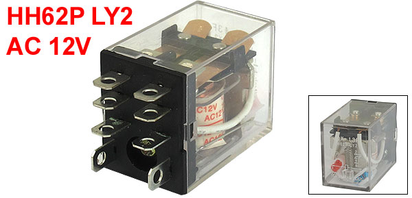Product Name Electromagnetic Relay Model No. HH62P LY2 Coil Voltage AC 12V Contact Capacity 10A 240VAC /28VDC Type DPDT Pin Quantities 8 Pin Size 6 x 5mm/0.24" x 0.2"(L*W) Overall Size (Approx.) 27 x 20 x 35mm/1.1" x 0.8" x 1.4"(L*W*H) Shell Material Plastic Main Color Blue Clear, Black Net Weight 31g Package Content 1 x Electromagnetic Relay - Reviews