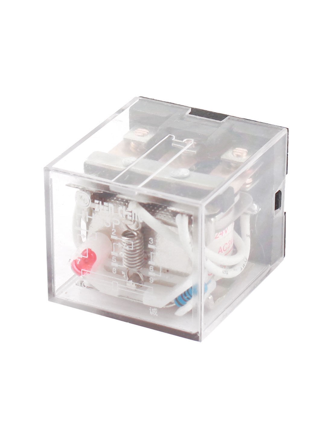 Product Name Electromagnetic Relay Model No. HH63P Type 4PDT Pin Quantities 11 Coil Voltage AC 24V Lamp Color Red Total Size (No Include Pin) 3.1 x 2.7 x 3.5cm/ 1.2" x 1.1" x 1.4" (L*W*H) Shell Material Plastic, Metal, Electric Part Main Color Clear, Silver Tone, Black Net Weight 51g Package Content 1 x Electromagnetic Relay - Reviews