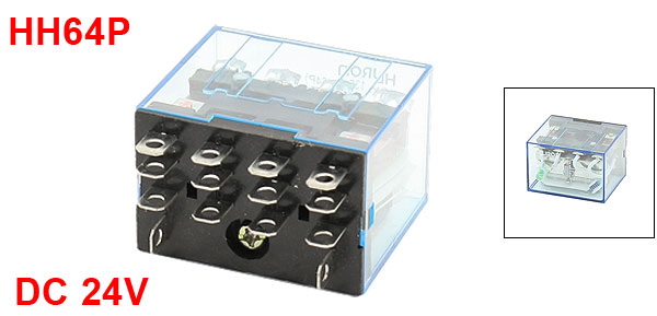 Product Name Electromagnetic Relay Model No. HH64P Coil Voltage DC 24V Type 4PDT Pin Quantities 14 Pin Size 6 x 5mm/0.24" x 0.2"(L*W) Overall Size (Approx.) 27 x 41 x 35mm/1.1" x 1.6" x 1.4"(L*W*H) Shell Material Plastic Main Color Blue Clear, Black Net Weight 65g Package Content 1 x Electromagnetic Relay - Reviews