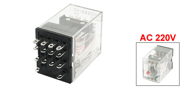 Type 4PDT(4NO 4NC) Pin Quantities 14 Light Color Red Pin Size 6 x 2.5mm/0.24" x 0.1"(L*W) Overall Size (Approx.) 27 x 21 x 35mm/1.1" x 0.8" x 1.4"(L*W*H) Shell Material Plastic Main Color Clear, Black Net Weight 32g Package Content 1 x Coil Power Relay - Reviews