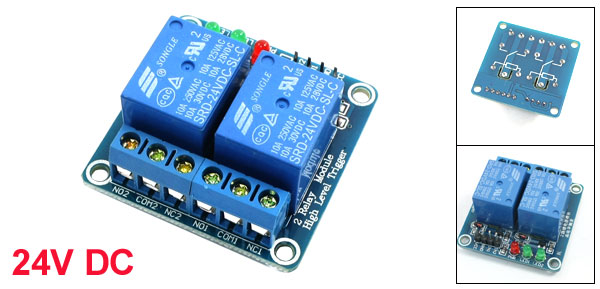 Product Name Relay Module Model SRD-24VDC-SL-C Number of Channels 2 Coil Voltage 24V DC Load 10A, AC 250V/125V, DC 30V/28V Size 4.5 x 4 x 2cm/1.8" x 1.6" x 0.78"(L*W*H) Material PCB Color Blue Weight 37g Package 1 x Relay Module - Reviews