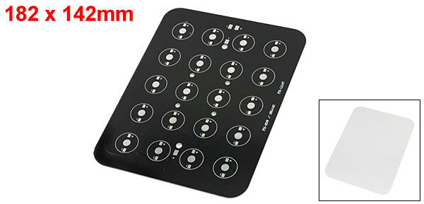 Product Name LED Aluminum Base Plate Fit for 20 x 1W/3W/5W LED in Series Size 182 x 142mm / 7.2" x 5.6"(L*W) Thickness 1.4mm / 0.05" Installation Hole Dia Big One: 4.5mm / 0.18"