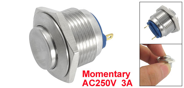 Item Name Stainless Steel Push Button Switch Operation Type Momentary Type Head Shape High Round Contact 1NO Terminal Number 2 Switch Rating AC 250V 3A Buttom Diameter 11mm/0.43''