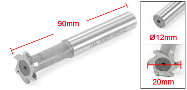 Product Name T Slot End Mill Material HSS Color Gray Cutting Diameter 20mm/3/4" Cutting Depth 3mm/ 3/25" Shank Diameter 12mm/1/2" Total Length 90mm/3.5" Weight 87g Package Content 1 x T Slot End Mill