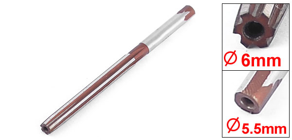 High Speed Steel 5.5mm Shank 6mm Cutting Dia 5 Flutes Machine Chucking Reamer