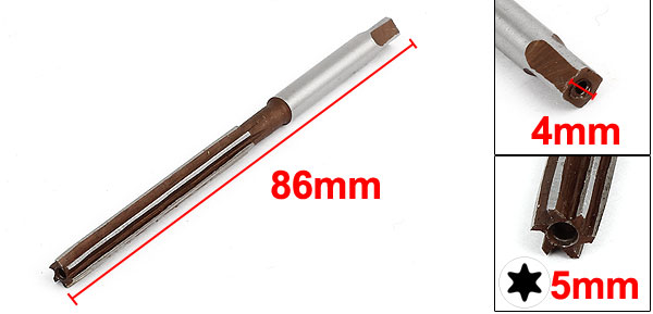 Product Name Machine Reamer Material HSS Flute Number 6 Cutting Diameter 5mm / 0.2" Cutting Depth 45mm/ 1.7" Shank Diameter 5mm / 0.2" Total Length 86mm/ 3.4" Main Color Silver Tone Weight 9g Package Content 1 x Machine Reamer - Reviews