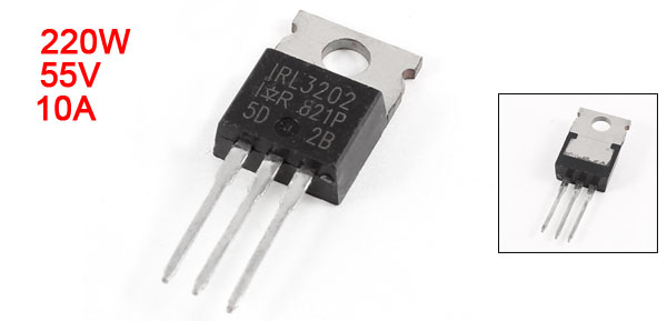 Product Name MOSFET Model No. IRF3202 Channel Type N-Channel Pin Quantity 3 Power 220W Drain Source Voltage 55V Drain Current 110A Package Type TO-220 Resistance 8 Ohm Mounting Hole Diameter 3.6mm/ 0.14" Total Size 29x 10 x 4mm/1.1" x 0.39" x 0.16" (L*W*H) Weight 3g Package 1 x N-Channel Power MOSFET - Reviews