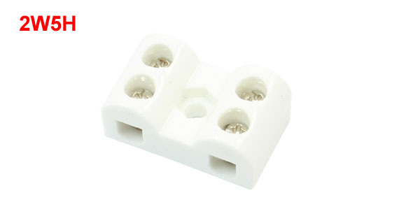 Product Name Ceramic Terminal Block Type 2W5H Rating Current 10A Rating Voltage 110-600V Max. Withstand Temperature 500°C Total Size 3.5 x 2 x 1.5cm/1.4" x 0.78" x 0.59"(L*W*T) Screw Mounting Hole Dia 4.5mm/0.18" Materials Ceramic, Copper Main Color White Net Weight 27g Package Content 1 x Ceramic Terminal Block - Reviews