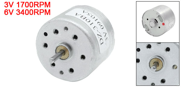 Shaft Size(Each) 2 x 8mm/ 0.078" x 0.315"(D*L) Body Size 24 x 18mm/ 0.95" x 0.7"(D*H) Main Color Silver Tone Material Metal Net Weight 29g Package 1 x DC Motor - Reviews