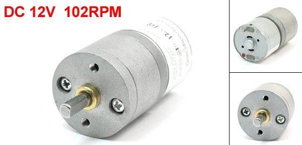 Product Name Gear Motor Rated Voltage DC 12V Rated Speed 102 RPM Shaft Size 10 x 4mm/ 0.39'' x 0.16''(L*D) Gear Box Size 2.3 x 2.5cm/0.9" x 1"(L*D) Motor Body Size 1.8 x 2.4cm/0.7" x 0.95"(L*D) Total Length(Included Pin) 5.5cm/2.2"