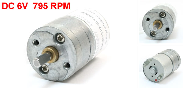 Product Name Gear Motor Rated Voltage DC 6V Rated Speed 795 RPM Shaft Size 10 x 4mm/ 0.39'' x 0.16''(L*D) Motor Body Size 1.8 x 2.5cm/0.7" x 1"(L*D) Gear Box Size 1.8 x 2.45cm/0.7" x 0.96"(L*D) Total Length(Included Pin) 4.8m/1.9"
