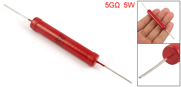 Product Name Glass Glaze Film Resistor Resistance Value 5GΩ Power Rating 5W Resistance Tolerance ± 5% (J) Pin Size(Each Side) 26 x 1mm/ 1" x 0.039"(L*D) Body Size 5 x 0.8cm/ 2" x 0.3" (L*D) External Material Glass Glaze, Metal Color Red, Silver Tone Net Weight 10g Package Content 1 x High Voltage Glaze Resistor - Reviews