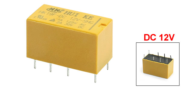 HK19F-DC12V-SHG DC 12V DPDT 8Pin PCB Realplay Coil Power Relay Yellow