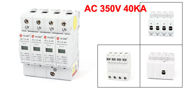Product Name Surge Protector Model HL1-C-40 Pole 4P Voltage(Uc) AC 350V Maximum Dishcharging Current 40KA Nominal Dishcharging Current (In) 20KA Portection Level <=1.8KV Mount Type 35mm DIN Mount Dimension 90 x 70 x 60mm/ 3.5" x 2.8" x 2.4" (L*W*H)