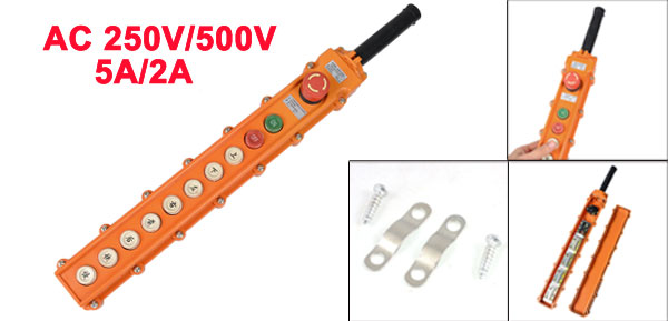 Hoist Crane Pendant Pushbutton Switch Up-Down Rainproof with Emergency Stop Knob