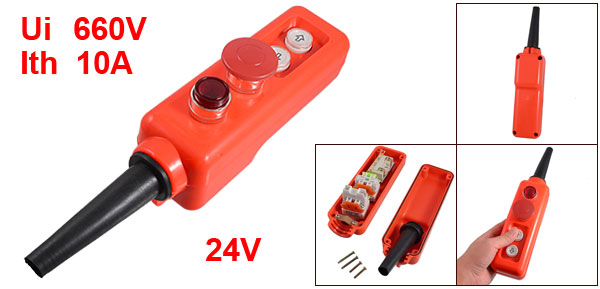 Hoist Red Lamp Mushroom Up Down Push Button Switch Pendant Control Station 24V