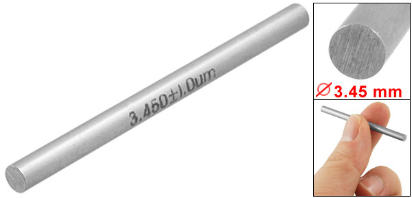 Product Name Pin Gauge Material Tungsten Carbide, Plastic Main Color Gray, Clear Size 3.45 x 50mm/ 2/15" x 2" (D*L) Net Weight 8g Package Content 1 x Pin Gauge
