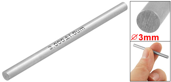 Product Name Pin Gauge Material Tungsten Carbide, Plastic Main Color Black, Clear Size 3 x 50mm/ 1/9" x 2" (D*L) Net Weight 7g Package Content 1 x Pin Gauge