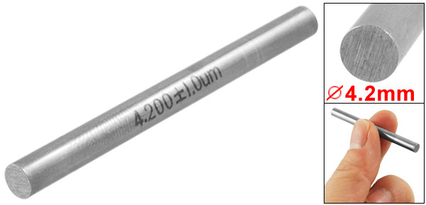 Product Name Pin Gauge Material Tungsten Carbide, Plastic Main Color Black, Clear Size 4.2 x 50mm/ 1/6" x 2" (D*L) Net Weight 10g Package Content 1 x Pin Gauge