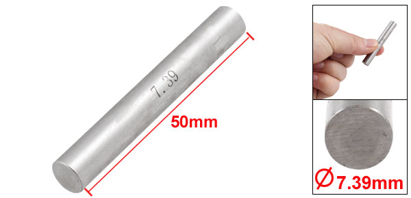 DetailsHole Measuring 7.39mm x 50mm Pin Gage Gauge w Plastic Cylindrical Box  Product Name Pin Gage Material Tungsten Carbide, Plastic Color Pin Gage: Gray Holder Box: Clear Accuracy +/- 0.001mm Size 7.39 x 50mm/ 0.29" x 2" (D*L) Holder Size 13 x 55mm/ 0.55" x 2.2" (D*L) Net Weight 25g Package Content 1 x Pin Gage 1 x Storage Box