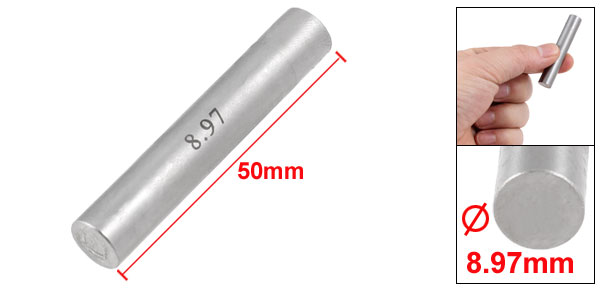 DetailsHole Measuring 8.97mm x 50mm Pin Gage Gauge w Plastic Cylindrical Box  Product Name Pin Gage Material Tungsten Carbide, Plastic Color Pin Gage: Gray Holder Box: Clear Accuracy +/- 0.001mm Size 8.97 x 50mm/ 0.353" x 2" (D*L) Holder Size 13 x 55mm/ 0.55" x 2.2" (D*L) Net Weight 25g Package Content 1 x Pin Gage 1 x Storage Box