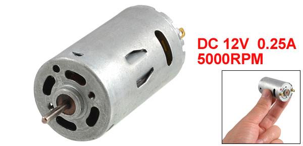 Product Name DC Micro Motor Rated Voltage DC 12V Current(no load) 0.25A Rated Power 2.3W Speed(no load) 5000RPM Body Size 28 x 46mm / 1.1" x 1.8" (D*H) Shaft Dia. 2mm/ 0.079" Total Length 67mm / 2.6" Main Color Silver Tone Material Metal Weight 88g Package 1 x DC Micro Motor - Reviews