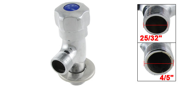 Product Name Angle Stop Valve Material Chrome Finish, Solid Brass Male Thread Diameter 20 x 20.3mm / 25/32" x 4/5" Overall Size (Approx.) 9 x 3.3 x 5cm / 3.5" x 1.3" x 2" (L*W*H) Color Silver Tone Weight 146g Package Content 1 x Angle Stop Valve 1 x Round Disc - Reviews