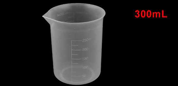 Product Name Measuring Cup Material Plastic Color Clear White Capacity 300mL Size 7.7 x 9.5 cm / 3" x 3.7" (D*H) Net Weight 27g Package Content