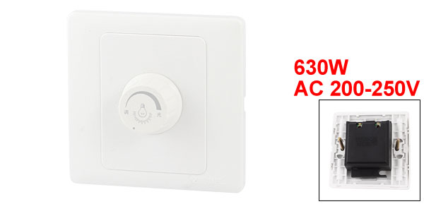 Product Name Dimmer Switch Material Plastic Color White Power 630W Voltage AC 200-250V Total Size 8.7 x 8.7 x 4.8cm/3.4'' x 3.4'' x 1.9''(L*W*T) Weight 91g Package Content 1x Dimmer Switch