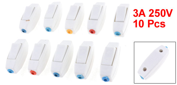 Household 3A 250V Snap in SPST In-line Lamp Switch White 10 Pcs