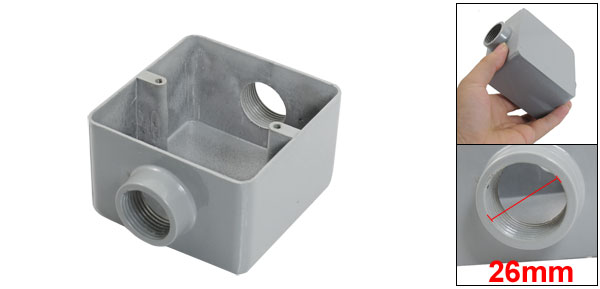 DetailsHousehold Metal Linear Double Hole Flush Mount Junction Box G3/4"  Product Name Junction Box Number of Hole 2 Thread Diameter 26mm Thread Size G3/4" Installing Thread Diameter 3.5mm/ 0.138" Installing Thread Distance 60mm/ 2.36"(Center to Center) Total Size 11.2 x 8.2 x 5cm/ 4.41" x 3.22" x 1.97"(L*W*H) Material Metal Color As Picture Shown Weight 143g Package 1 x Junction Box