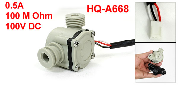 Product Name Hall Flow Sensor Model HQ-A668 Max Switching Current 0.5A Max Carry Current 1.0A Max Cantact Resistance 100 M Ohm Max Load Power 10W Max Switching Voltage 100V DC Max Broken down Voltage 220V DC Starting Flow Rate =<0.2L/min Working Flow Rate 1-30L/min Start Water Pressure <0.1MPa Min Withstand Water Pressure 1.2MPa Max Withstand Water Pressure 1.6MPa Working Condition Temperature 1-120C Operating Temperature -40-+150 Response Time 0.2S Release Time 0.2S Connector Pin Number 3 Pin Material Plastic, Metal Total Size 6 x 4.5 x 3.5cm / 2.3" x 1.8" x1.3"(L*W*T) Thead Diameter 20mm / 0.8" Thread Size G3/4" Connector Diameter 19mm/0.74" Cable Length 15cm / 5.9" Weight 69g Package Content 1 x Hall Flow Sensor - Reviews