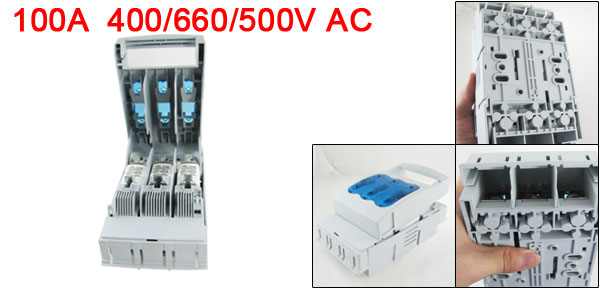 Product Name Fuse Isolating Switch Model No. HR17B-160/300 Fuse Type NT00 Rated Voltage 400VAC,660VAC, 500VAC Rated Current 100A Rated Limiting Short Current 120kA/500VAC, 50kA/660VAC Rated Heating Current 160A Poles Quantity 3 Mounted Hole Spacing 66 x 25mm / 2.6" x 0.98"(L*W) Overall Size 20 x 106 x 90mm / 7.9" x 4.2" x 3.5"(L*W*H) External Material Plastic Color See the Picture Net Weight 1116g Package Content 1 x Fuse Isolating Switch - Reviews