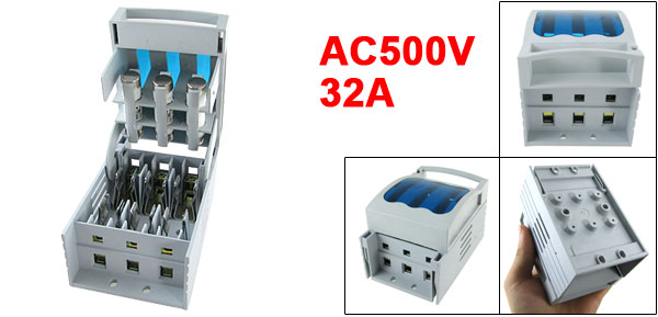 Product Name Fuse Isolating Switch Model No. HR17B-40/30 Fuse Type 14 x 51mm / 0.55" x 2"(D*H) Rated Voltage 500VAC Rated Current 32A Rated Limiting Short Current 50kA Rated Heating Current 40A Poles Quantity 3 Mounted Hole Spacing 103 x 22mm / 4" x 0.86"(L*W) Overall Size 115 x 76 x 73mm / 4.5" x 3" x 2.9"(L*W*H) External Material Plastic Color See the Picture Net Weight 342g Package Content 1 x Fuse Isolating Switch - Reviews