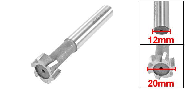 Product Name T Slot End Mill Material HSS Color Gray Cutting Diameter 20mm/3/4" Cutting Depth 8mm/ 5/16" Shank Diameter 12mm/1/2" Total Length 90mm/3.5" Weight 94g Package Content 1 x T Slot End Mill
