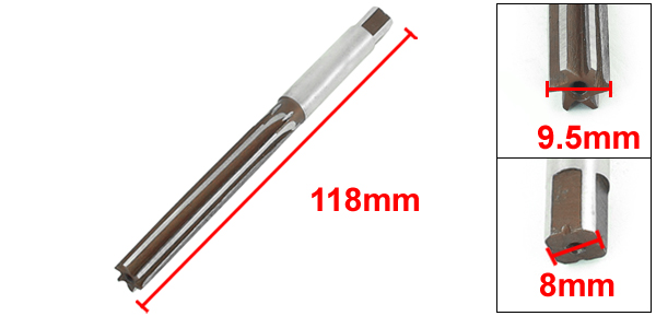 Product Name Hand Reamer Material HSS Flute Number 6 Cutting Diameter 9mm/ 0.35" Cutting Depth 70mm/ 2.7" Shank Diameter 9.5mm/ 0.37" Square End 8 x 8mm/ 0.31" x 0.31"(L*W) Total Length 118mm/ 4.6" Color Gray, Dark Brown Weight 49g Package Content 1 x Hand Reamer - Reviews