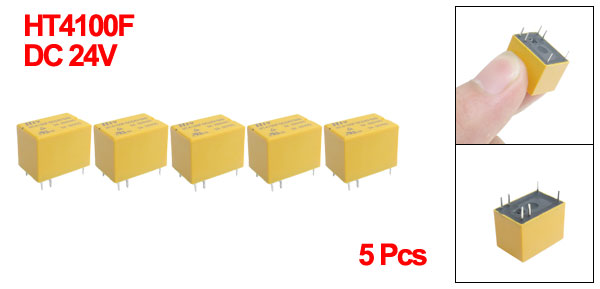 Product Name General Purpose Relay Model HT4100F Coil Voltage DC 24V Contact AC 250V/3A DC 30V/3A Pin Quantity 6 Pin Size (Approx.) 1.5 x 1 x 1.1cm / 0.6" x 0.4" x 0.4"(L * W * T) Color Yellow Weight 18g Package Content 5 x General Purpose Relay - Reviews