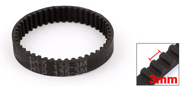 Product Name Timing Belt Model HTD135-3M Teeth Type HTD-3M Tooth Pitch 3mm Belt Width 8mm Pitch Length 135mm Belt Material Neoprene (Synthetic Rubber), Nylon(tooth) Core Wire Material Glass Fiber Color Black Net Weight 4g Package Content 1 x Timing Belt - Reviews