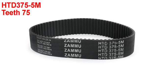 DetailsHTD375-5M 75 Teeth 5mm Pitch Rubber Cogged Industrial Timing Belt Black 375mm  Product Name Timing Belt Type HTD375-5M Number of Teeth 75 Pitch 5mm/0.2" Belt Width 25mm /1" Belt Girth 375mm /14.8" Material Rubber Color Black Weight 40g Package Content 1 x Timing Belt