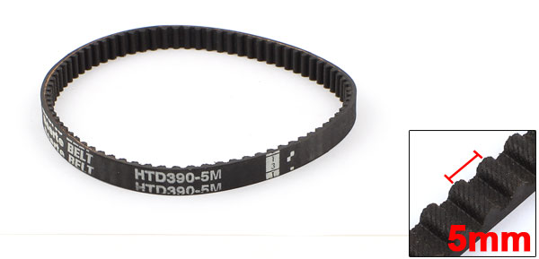Product Name Timing Belt Model HTD390-5M Teeth Type HTD 5M Tooth Pitch 5mm Belt Width 10mm Pitch Length 390mm Belt Material Neoprene (Synthetic Rubber), Nylon(tooth) Core Wire Material Glass Fiber Color Black Net Weight 16g Package Content 1 x Timing Belt - Reviews
