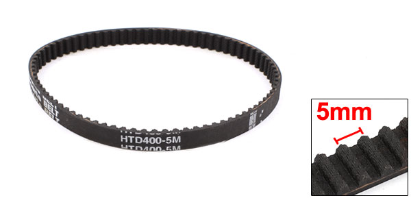 Product Name Timing Belt Model HTD400-5M Number of Teeth 80 Pitch 5mm / 0.2" Tooth Height 2.06mm / 0.08" Tooth Width 3.05mm / 0.12" Belt Width 10mm / 0.4" Belt Girth 400mm/ 1.3Ft/ 15.7" Total Height 3.8mm/0.15" Belt Material Neoprene (Synthetic Rubber) Core Wire Material Glass Fiber Color Black Net Weight 16g Package Content 1 x Timing Belt - Reviews