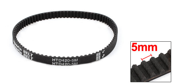 Product Name Timing Belt Model HTD420-5M Number of Teeth 84 Pitch 5mm / 0.2" Tooth Height 2.06mm / 0.08" Tooth Width 3.05mm / 0.12" Belt Width 10mm / 0.4" Belt Girth 420mm/ 1.4Ft/ 16.5" Total Height 3.8mm/0.15" Belt Material Neoprene (Synthetic Rubber) Core Wire Material Glass Fiber Color Black Net Weight 16g Package Content 1 x Timing Belt - Reviews