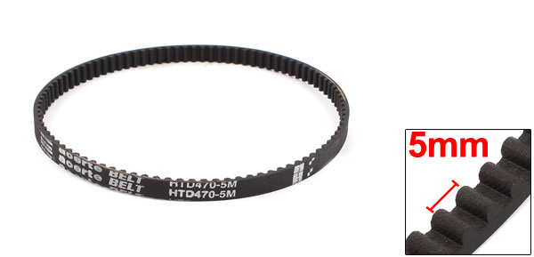 Product Name Timing Belt Model HTD470-5M Number of Teeth 94 Pitch 5mm / 0.2" Tooth Height 2.06mm / 0.08" Tooth Width 3.05mm / 0.12" Belt Width 10mm / 0.4" Belt Girth 470mm/ 1.5Ft/ 18.5" Total Height 3.8mm/0.15" Belt Material Neoprene (Synthetic Rubber) Core Wire Material Glass Fiber Color Black Net Weight 19g Package Content 1 x Timing Belt - Reviews