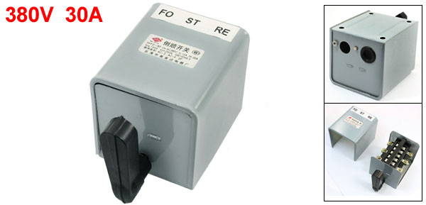 Product Name Reversing Drum Switch Model No. HY2-30 Ue & Ie 380V 12A Ith 30A Applications Forward, Stop, Reverse Cable Connector Hole Dia 17mm/0.67" Handle Size 80 x 25mm/3.1" x 1"(L*W) Main Body Size 105 x 105 x 107mm / 4.1" x 4.1" x 4.2"(L*W*H) External Material Metal Weight 614g Package Content 1 x Reversing Drum Switch